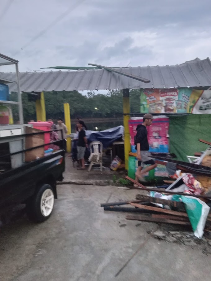 BOGOR - Hujan deras disertai angin puting beliung yang terjadi di sekitar Setu Kemuning jalan Raya Tonjong Desa Cimanggis Kecamatan Bojong gede kabupaten Bogor, robohkan 6 bangunan kios di pinggiran Setu , Senin sore pukul 14:30 WIB (19/06/2023).